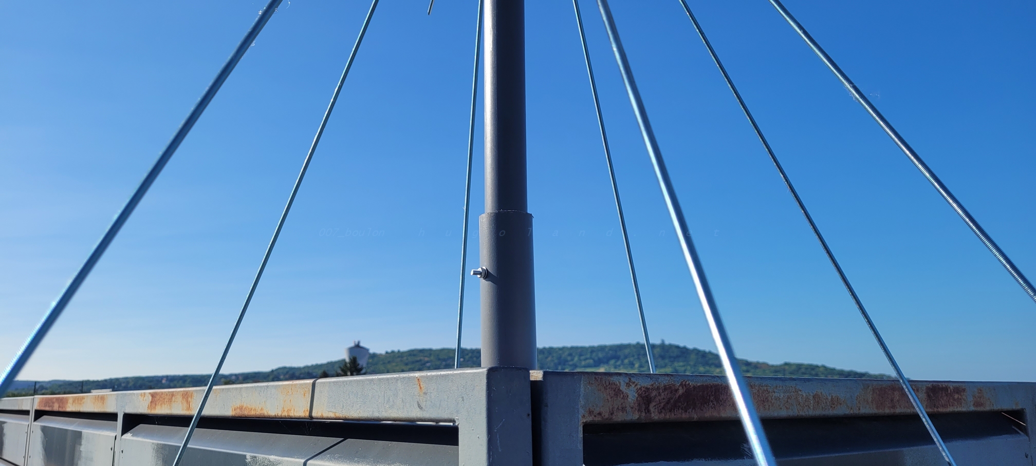 Comme il est facilement démontrable qu'éloigner l'antenne du sol, ne serait-ce que de quelques dizaines de centimètres, avait déjà un effet bénéfique sur la réception (à condition de ne pas avoir de poutre en béton armé ou de câble sous tension dans la dalle juste dessous), je voulais la surélever. Pour cela, j'avais prévu de me servir d'un tube PVC et de la clôture opaque, qui sert à masquer les machines de VMC et de climatisation.